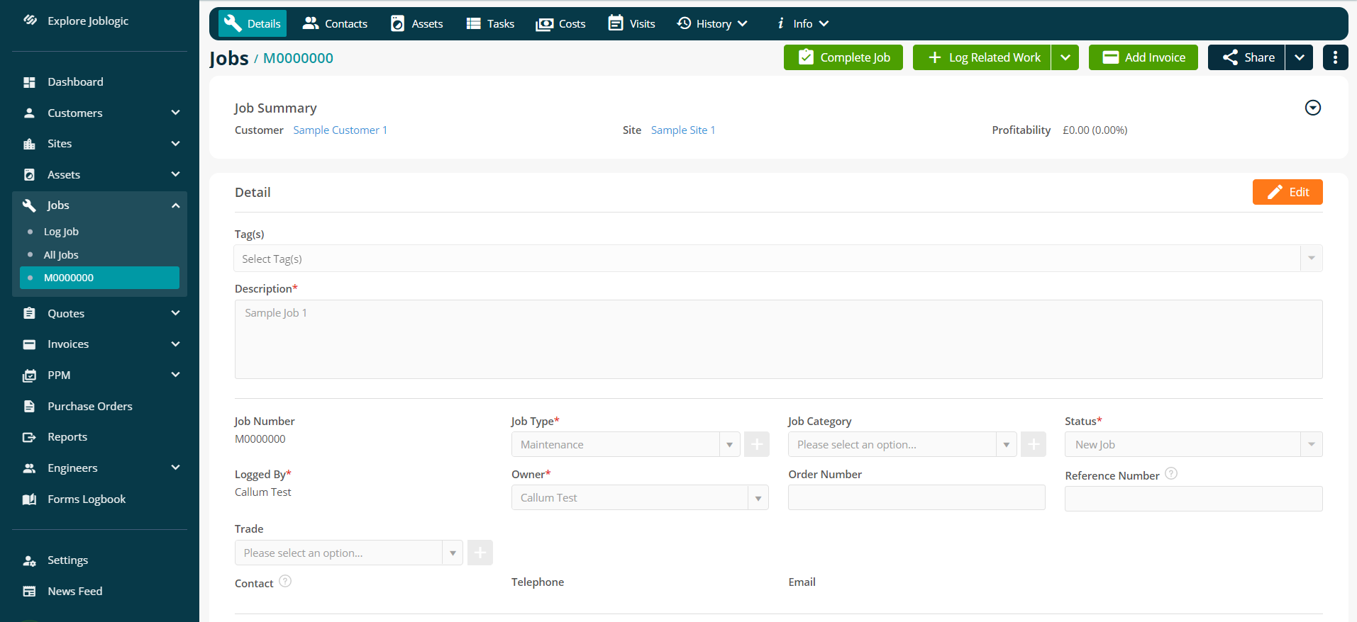 We have introduced an update to the Job and Asset maintenance software detail pages of Joblogic. This feature will be coming soon. See below the changes we have made.