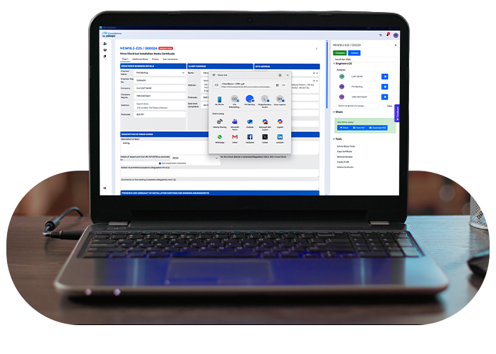 Securely collect engineer and client signatures directly within the certificate - ideal for proof of service and audit trails.