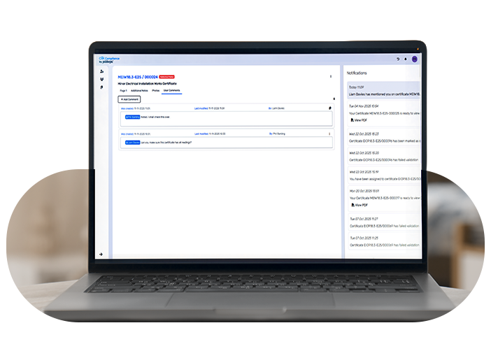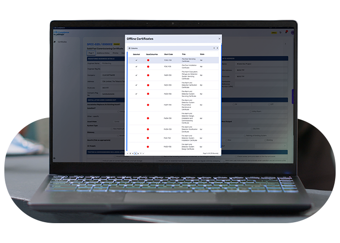 Engineers can complete, validate, and sync certificates on-site, even without an internet connection.